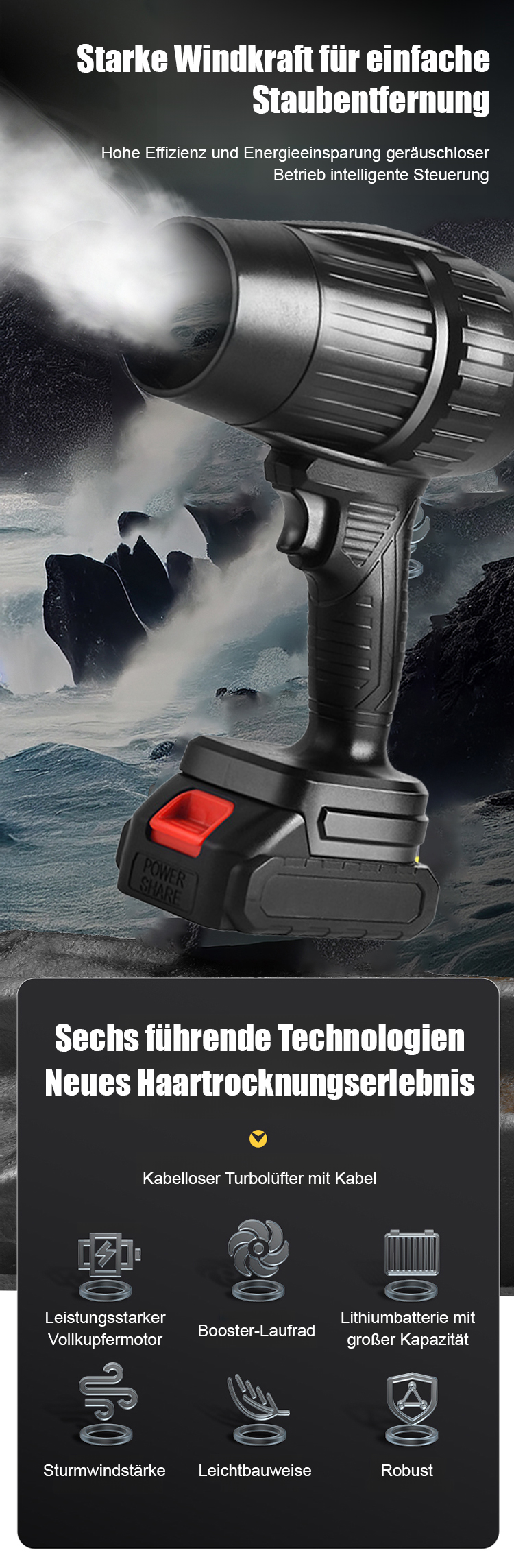 Kabelloses Design, unter 1 kg, ergonomischer Griff für einfache Einhandbedienung